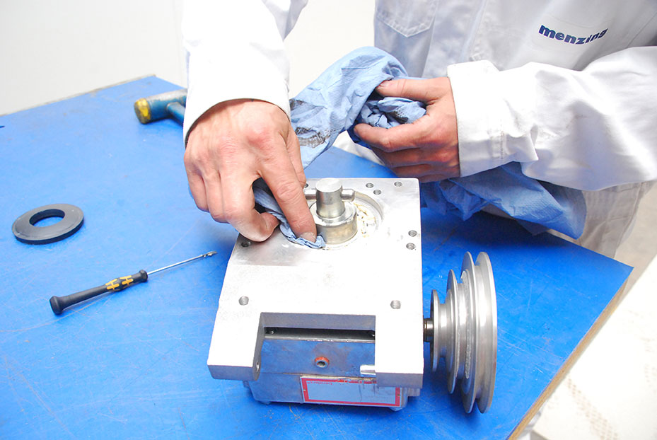 Vor allem bei älteren Spritzputzmaschinen kann es nach einiger Zeit zu Materialverfärbungen kommen. Das Material bekommt dann eine graue Farbe, weil das Material mit Fett aus dem Reduktionsgetriebe in Berührung kommt. Es ist dann zu empfehlen sowohl die Dichtung als auch den Simmerring auszutauschen.